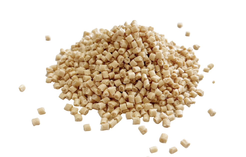 「きのこプ」は木の粉で、「たけのこプ」は竹の粉で作ったバイオマスプラスチックです。きのこ(木の粉)・たけのこ(竹の粉)対PP比率は、52%対48%で、製造する製品によって異なります。